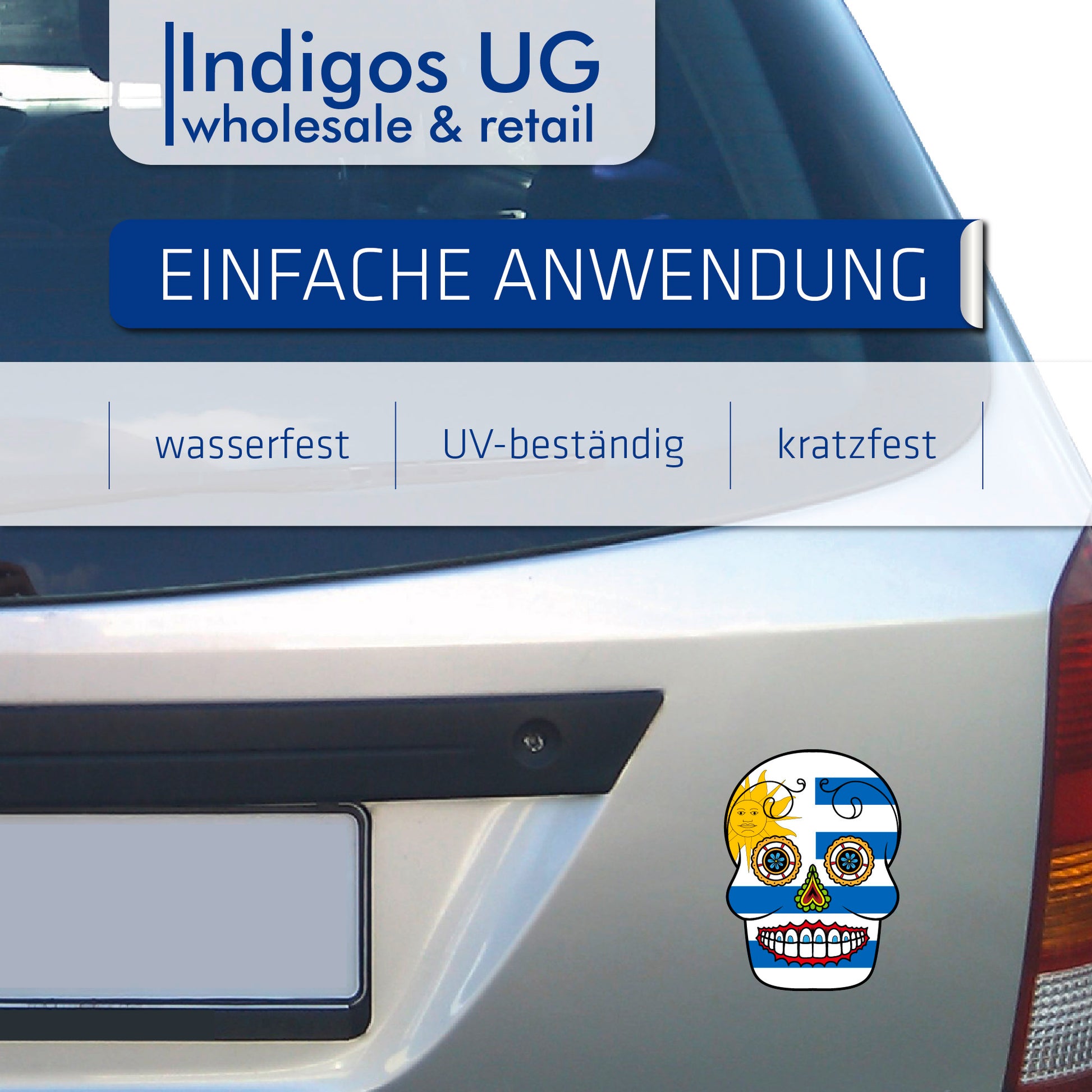 • Unsere Sticker gibt es in verschiedenen Größen und allen Ländern- so dass Sie die Wahl haben ob Sie groß oder klein gesehen werden wollen. Einfach ablösen und aufkleben. Leicht wieder vom Auto usw. zu entfernen.INDIGOS UG - Aufkleber