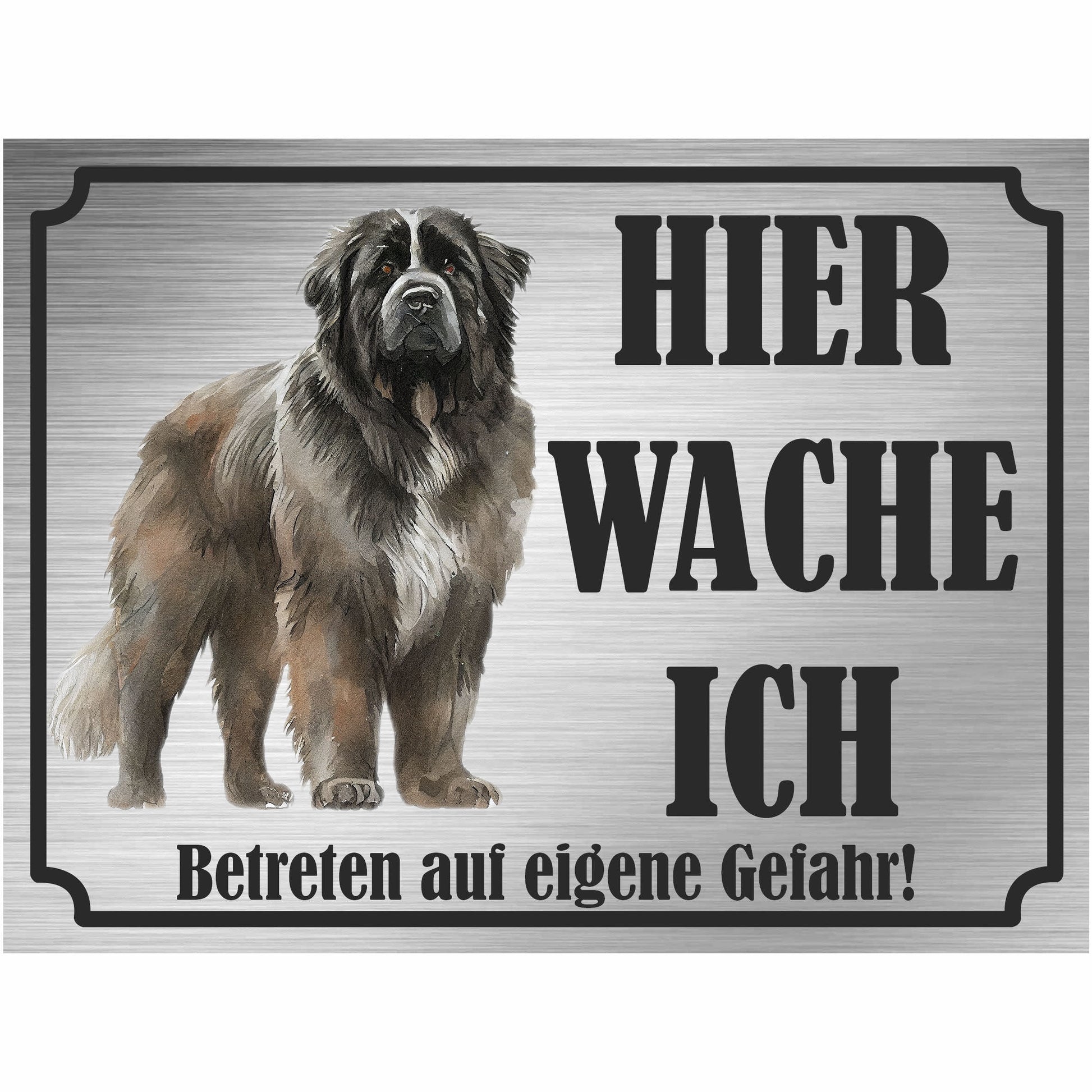 Neufundländer - Schild bedruckt - Hier wache ich - Aluverbundplatte Edelstahl Look